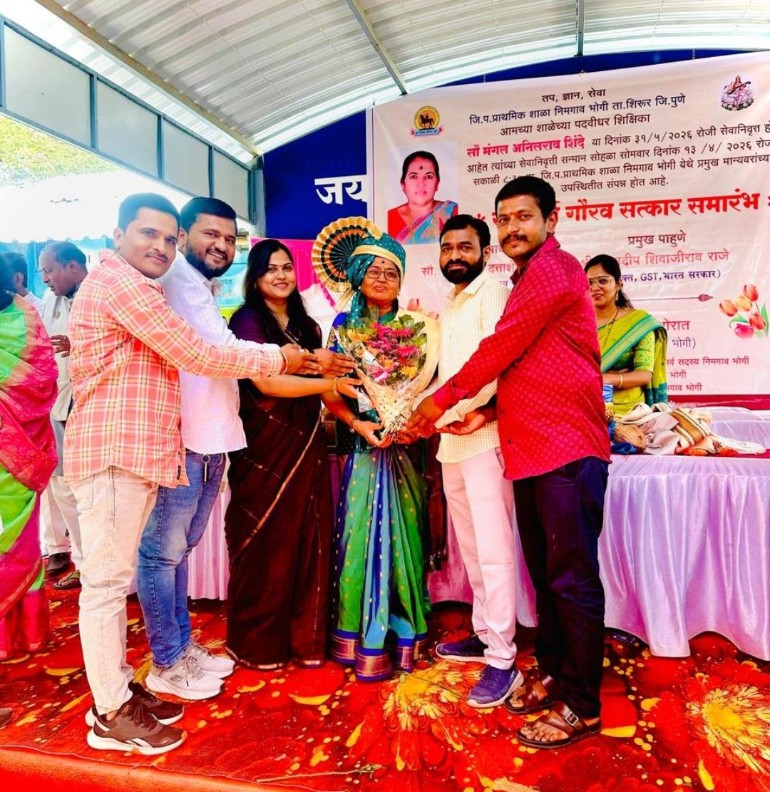 आदर्श शिक्षक सौ.मंगल ताई अनिलराव शिंदे यांचा सेवापूर्तीच्या कार्यक्रम आज दिनांक 13/04/2026 रोजी निमगाव भोगी जिल्हा परिषद प्राथमिक शाळा या ठिकाणी संपन्न करण्यात आला.